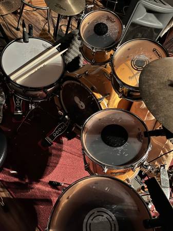 Nice Mapex set here, just want a drummer to stop by and check it out , bring whatever snare or cymbals you want or just use mine ,