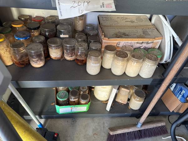 Approximately 300 to 400 jars of food canned before 2000. NOT FOR HUMAN CONSUMPTION. Everything from fruit to meat. May work well for livestock. (We have not found any that has gone "bad", but does have an oldish flavor).