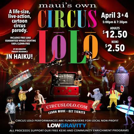 4/3-4/4: Maui’s Own Circus Lolo, a Fundraiser for Low Gravity (Haiku)