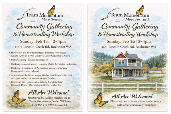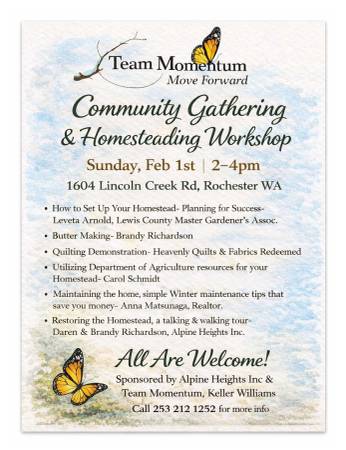 2/1: Community Event & Homesteading Workshop (Lincoln Creek Valley, Rochester WA)